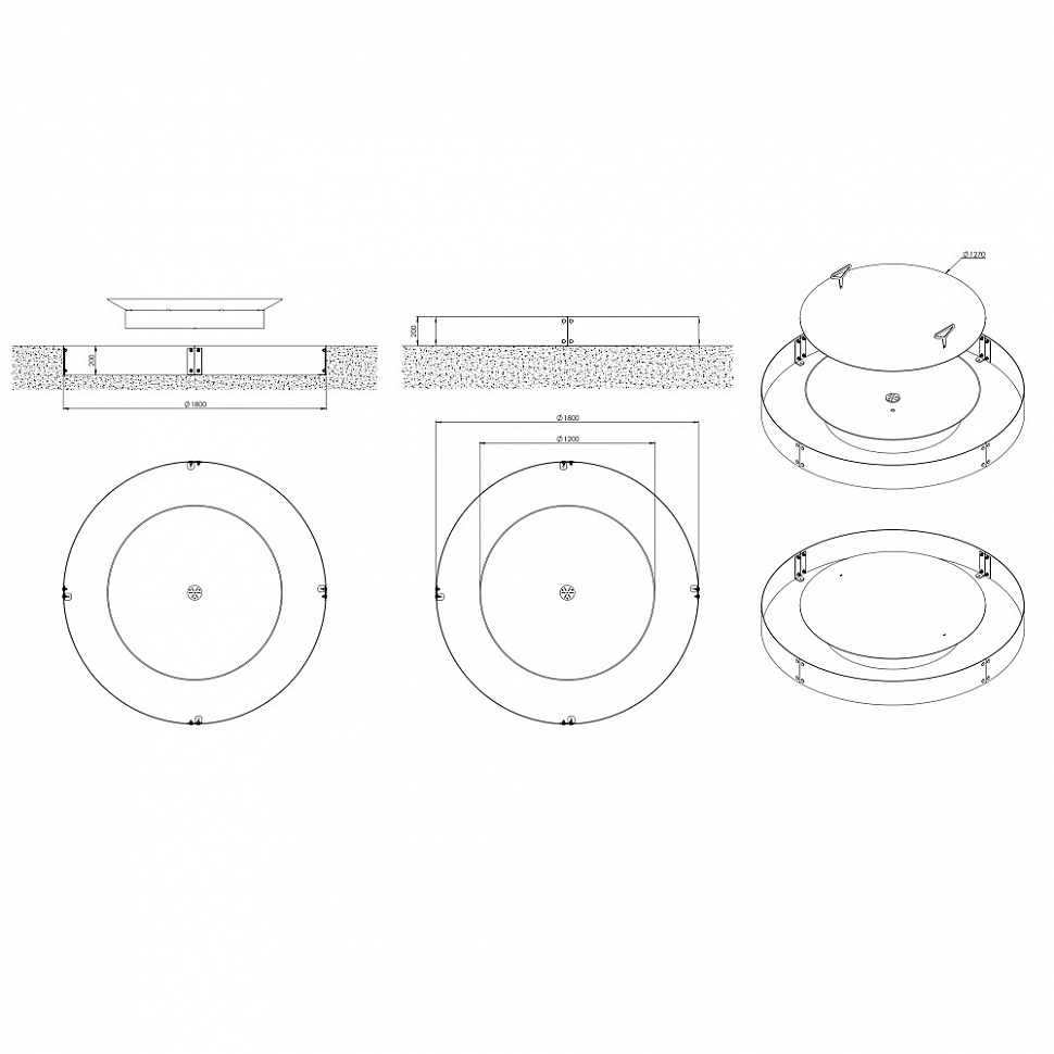Обечайка (большой высокий обруч), очаг на подставке, крышка на очаг, декоративные огнеупорные камни.