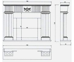 Оригинальным решением этого изразцового камина являются боковые стойки для декоративных предметов интерьера. Призматическая дверца топки с жаропрочным стеклом. Внизу камина расположена дровница.